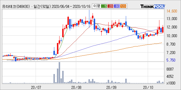 | À¯¶óÅ×Å©, ÀüÀÏ ´ëºñ +11.16% »ó½Â... °Å·¡·® ÀüÀÏ 4¹è ÀÌ»ó | Á¶¼¼±ÝÀ¶½Å¹® | 2020-10-16 | |