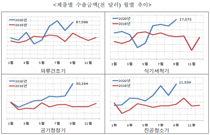 (Á¶¼¼±ÝÀ¶½Å¹®=ȫ丰 ±âÀÚ) Äڷγª19 Àå±âÈ¿Í °¡Á¤¿¡ ¸Ó¹«´Â ½Ã°£ÀÌ Áõ°¡ÇÏ¸é¼ ÀÇ·ù°ÇÁ¶±â, ½Ä±â¼¼Ã´±â, °ø±âûÁ¤±â, Áø°øÃ»¼Ò±â µî À̸¥¹Ù ûÁ¤°¡ÀüÀÇ ¼öÃâÀÌ Å©°Ô ´Ã°í ÀÖ´Ù.