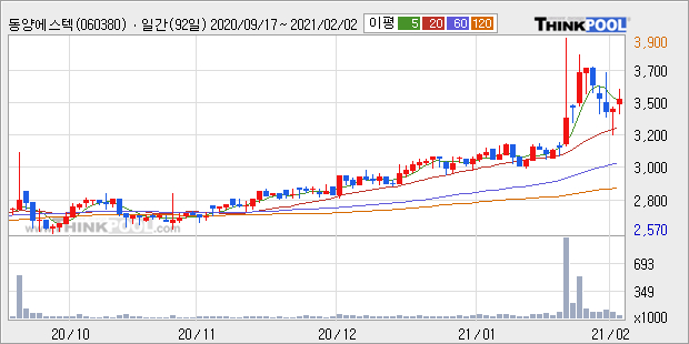 | µ¿¾ç¿¡½ºÅØ, °Å·¡·® Áõ°¡Çϸç ÁÖ°¡ »ó½Â... ÁÖ°¡ +5.17% ¡è | Á¶¼¼±ÝÀ¶½Å¹® | 2021-02-03 | |