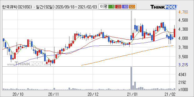 | Çѱ¹Å¥ºò, ÁÖ°¡ +9.05% »ó½Â Áß... ÃÖ±Ù 5°Å·¡ÀÏ ÃÖ°í °Å·¡·® µ¹ÆÄ | Á¶¼¼±ÝÀ¶½Å¹® | 2021-02-03 | |