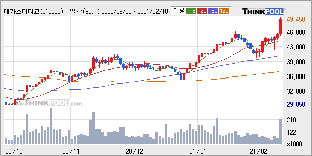 | ¸Þ°¡½ºÅ͵ð±³À°, °Å·¡·® Áõ°¡Çϸç ÁÖ°¡ »ó½Â... ÁÖ°¡ +7.69% ¡è | Á¶¼¼±ÝÀ¶½Å¹® | 2021-02-10 | |