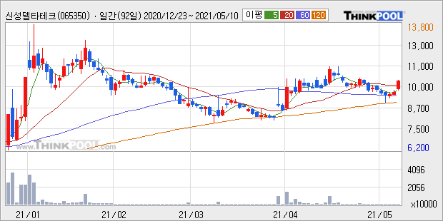 | ½Å¼ºµ¨Å¸Å×Å©, ÁÖ°¡¿Í °Å·¡·® µ¿¹Ý »ó½Â... ÁÖ°¡ +7.95% ¡è | Á¶¼¼±ÝÀ¶½Å¹® | 2021-05-10 | |
