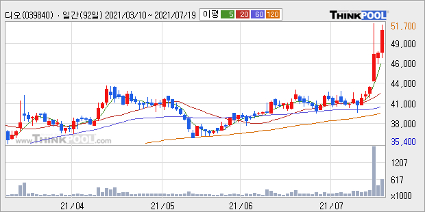 | µð¿À, ÁÖ°¡ +13.96% »ó½Â Áß... °Å·¡·® ±ÞÁõ | Á¶¼¼±ÝÀ¶½Å¹® | 2021-07-19 | |