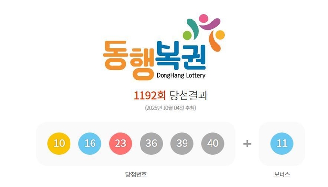 (Á¶¼¼±ÝÀ¶½Å¹®=¹ÚûÇÏ ±âÀÚ) Á¦1192ȸ ·Î¶Çº¹±Ç Ãß÷¿¡¼ '10, 16, 23, 36, 39, 40'ÀÌ 1µî ´ç÷¹øÈ£·Î »ÌÇû´Ù. 2µî º¸³Ê½º ¹øÈ£´Â '11'ÀÌ´Ù.