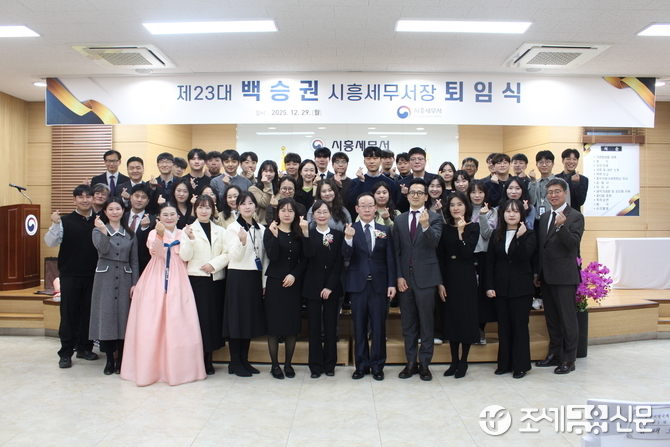 (Á¶¼¼±ÝÀ¶½Å¹®=±è¿µ±â ±âÀÚ) 12¿ù 29ÀÏ ¿ÀÈÄ 2½Ã, °æ±âµµ ½ÃÈï½Ã ¼ÒÀç ¡®½ÃÈï¼¼¹«¼ û»ç¡¯ ´ëȸÀǽÇ. À̰÷¿¡´Â ¸¹Àº ³»¿ÜºóÀÌ Âü¼®ÇÑ °¡¿îµ¥ ¡®Á¦23´ë ¹é½Â±Ç ½ÃÈï¼¼¹«¼Àå ¸í¿¹ÅðÀӽġ¯ÀÌ °³ÃֵƴÙ.