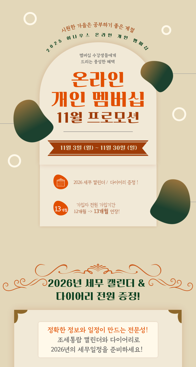 ¿Â¶óÀα³À° [À̳ª¿ì½º] 11¿ù ¿Â¶óÀÎ ¸â¹ö½Ê ÇÑÁ¤ ÇýÅÃ! 26³â ´ÙÀ̾&͏°´õ, 13°³¿ù ±â°£¿¬Àå±îÁö! 2025-11-03